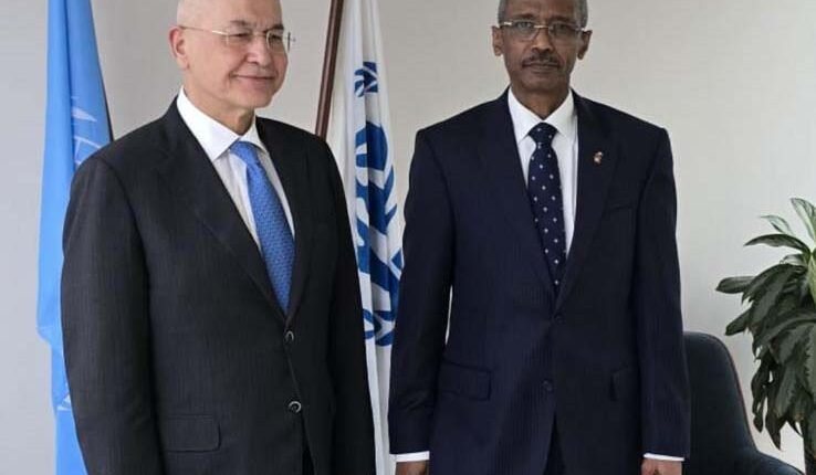 Sudan’s Permanent Representative to the United Nations in Geneva, Ambassador Hassan Hamid, has discussed the situation of Sudanese refugees in neighboring countries and the conditions of internally displaced persons (IDPs) with the United Nations High Commissioner for Refugees, Barham Salih, at the start of the latter’s term.